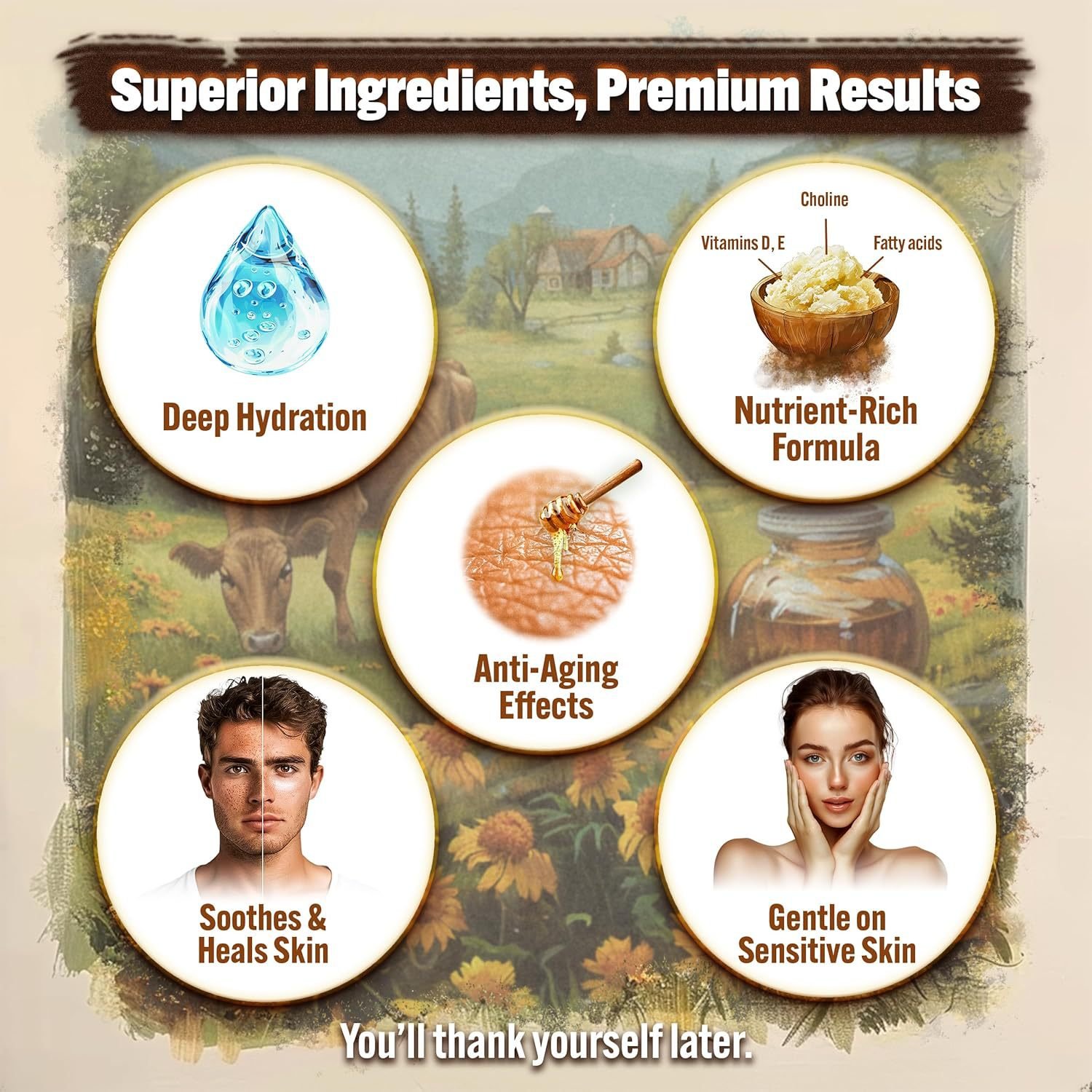 - 🧴 MOTHER NATURE’S ULTIMATE MOISTURIZER - Our whipped tallow is filled to the brim with skin-loving ingredients like Vitamins D, E, Choline, and fatty acids that will nourish your skin better than any chemical cocktail on the market. Use this cream as a face moisturizer, body lotion, or lip balm.