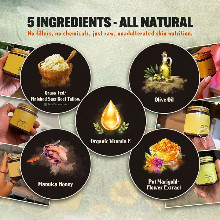 - 🇺🇸 PREMIUM INGREDIENTS - We sourced only the finest ingredients: grass fed grass finished beef tallow, Manuka honey, organic cold-pressed olive oil, pot marigold flower