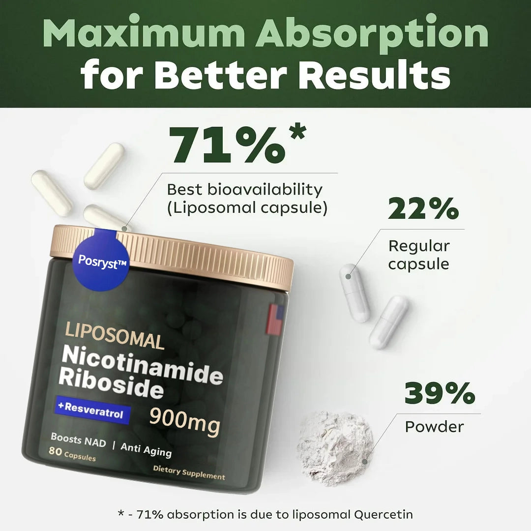 A COMPLETE ANTI AGING SUPPLEMENT – Support whole body wellness and boost energy with Posryst™, a patented NAD supplement which supports the 37.2 trillion cells in your body and its production of nicotinamide riboside (NR) to promote healthy cell activity and reduce aging-related health concerns. Posryst™ is clinically proven to be one of the safest and most efficient boosters of NAD levels, with an average increase of over 50% in 2 weeks with daily use