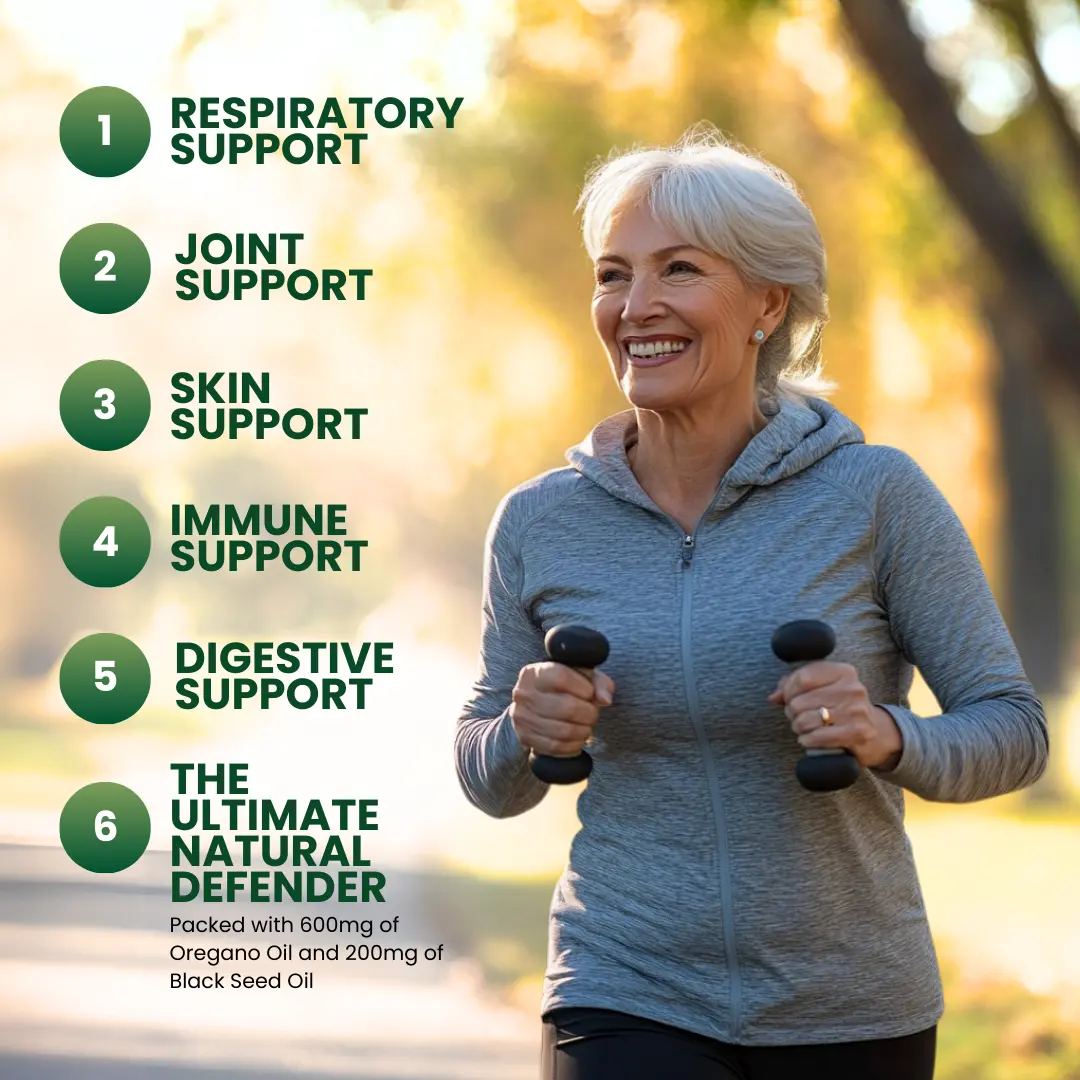 Two of nature's most powerful defenders-Oregano Oil and Black Seed Oil-now combinedin one daily capsule. These ancient remedies have protected health for centuries, and ouiformula brings these time-tested healers into the modern world.