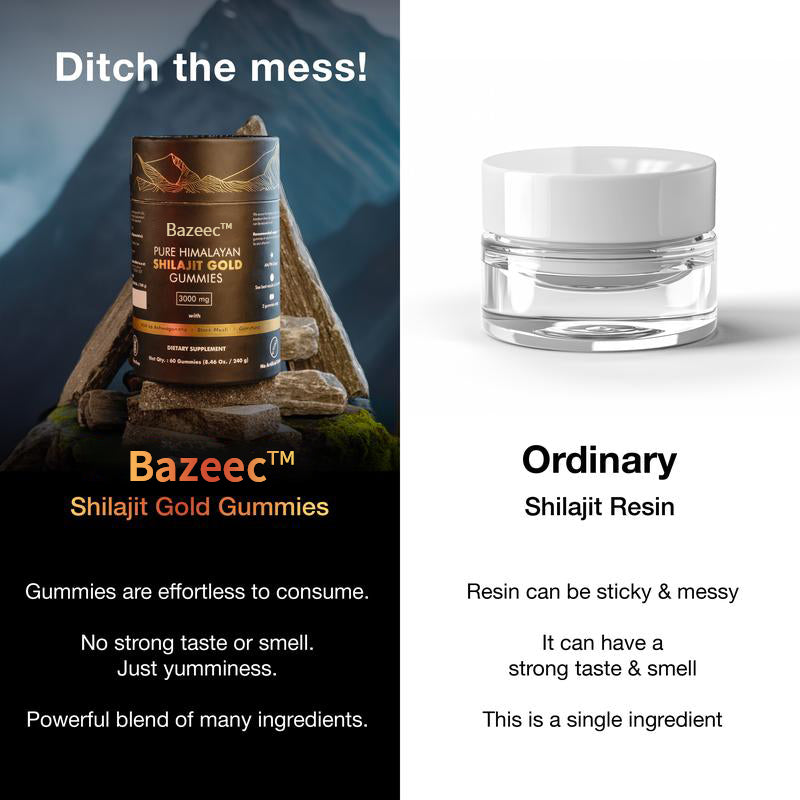 - With "3000 mg Pure Shilajit" , “ No Added Sugar” and infusion of potent ingredients including Ashwagandha, Black Musli & Gokshura; our Shilajit Gold Gummies pack a powerful punch of essential nutrients that are 100% natural and organic. Our Shilajit Gold Gummy comes free of heavy metal and chemical contaminants. Each pack comes with an “Individual Lab Certificate” that guarantees purity and superior quality.